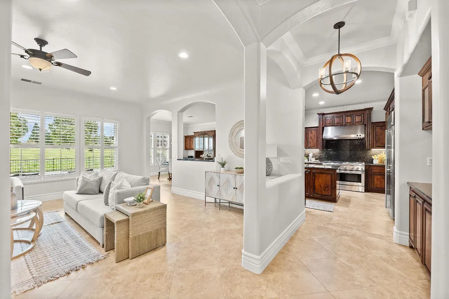 Luxury living in the gated community of Morgan Creek Estates! This stunning single-story home offers 3,660 sqft of open-concept living on a spacious 0.47-acre lot that backs to tranquil green-belt providing both privacy and scenic views. Inside, you'll find a gourmet kitchen, elegant walnut cabinetry, and fresh interior and exterior paint that create a warm, modern feel. The home features generously sized rooms, including a Jack & Jill bedroom setup, and a flexible floor plan ideal for multigenerational living. With two full laundry rooms, this home is designed for comfort and convenience. Step outside to your private backyard oasis complete with a newly built pool, outdoor kitchen, garden area, and kids' play zone perfect for entertaining or unwinding in style. Located in one of Roseville's most desirable golf course communities, this beautifully updated estate offers the perfect blend of elegance, functionality, and resort-style amenities.